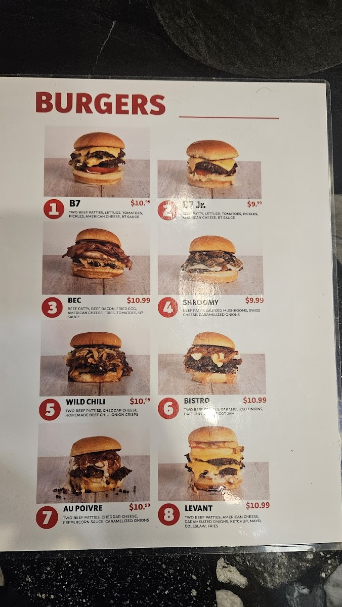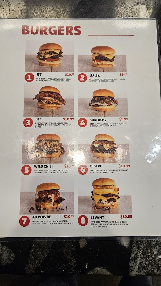 The menu at Burger 7, located at 4533 Duke St, Alexandria, VA, offers a variety of delicious and satisfying options, ideal for anyone craving a hearty meal. One of the standout items on the menu is the B7 Burger, a customer favorite that promises a flavorful and filling experience. For those who prefer a simpler choice, the Hamburger is a classic option, while the Cheese Burger adds a layer of richness with melted cheese. If you’re in the mood for something more indulgent, the Double Cheese Burger offers double the cheesy goodness, making it a great option for cheese lovers.